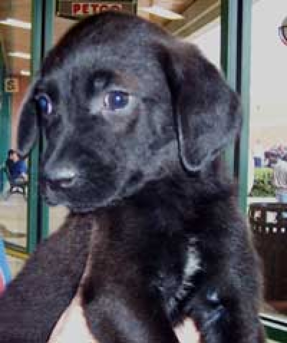 This little cutie is one from a litter of nine. Although they are mixes, they look mostly like Black Labs. Labs are very intelligent, easily trained, and good with kids.