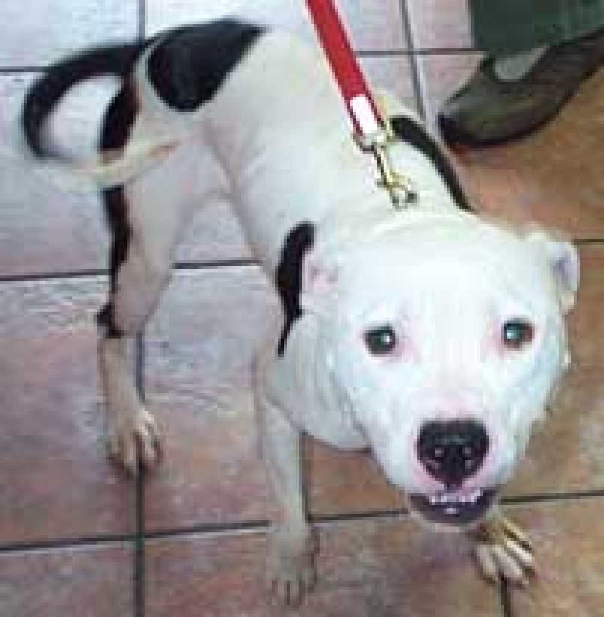 Wally is a 1-2 year old Pit Bull that was rescued from the Katrina disaster area. This poor boy is very thin, weighing only 31 pounds. Despite some skin issues due to fleas and wounds on his tail and neck, this guy is very sweet. He is also heartworm positive and has begun treatment.