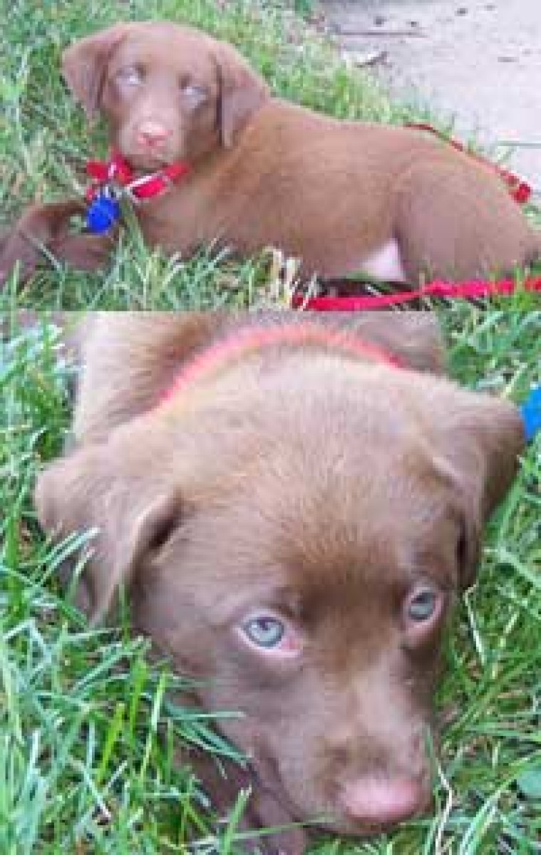 Hi, my name is Willow. I was rescued from New Orlean with my sister and am now ready for adoption. I am a pretty chocolate lab with my bright blue-green eyes. I am a lively, healthy puppy who is almost potty-trained. I have accidents sometimes, but then again, I am only eight weeks old. I am smaller than my sister, but I am not at all timid and love to initiate our wrestling matches. I am super sweet and look forward to finding a loving forever home.