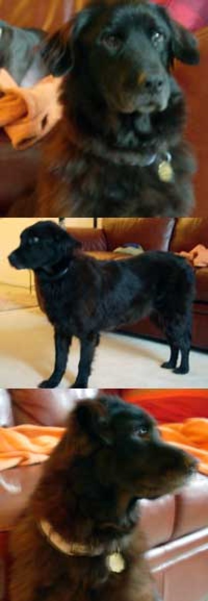 Maggie is a Retriever that was pulled out of New Orleans on our fourth trip to the Gulf Region. This poor girl is very thin. She also has some burns on her skin from the caustic waters of New Orleans, which has also caused her her black coat to bleached to a redish color. Update: Maggie is a brown/black long haired lab mix rescued from Katrina. She has a microchip but it is not registered. She is a sweet older lady, who has taken a particular liking to the man in our house. She would be a loving and loyal dog to anyone but particular loves men! She received a clean bill of health from the vet, and her coat and skin is recovering nicely from the stress of Katrina. She is housetrained and crate trained and seems to enjoy other dogs and even the cat in her foster home. She really loves laying around the house and having her belly scratched. She is really quite sweet and would make a great family pet.