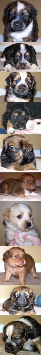 These gorgeous pups are Elena's pups. The pups 3rd-5th from the bottom are adopted. They were born on 10/24/06. There are 10 pups and only one is a girl. Like their mom, they have a wonderful disposition. They are just so sweet and cuddley.