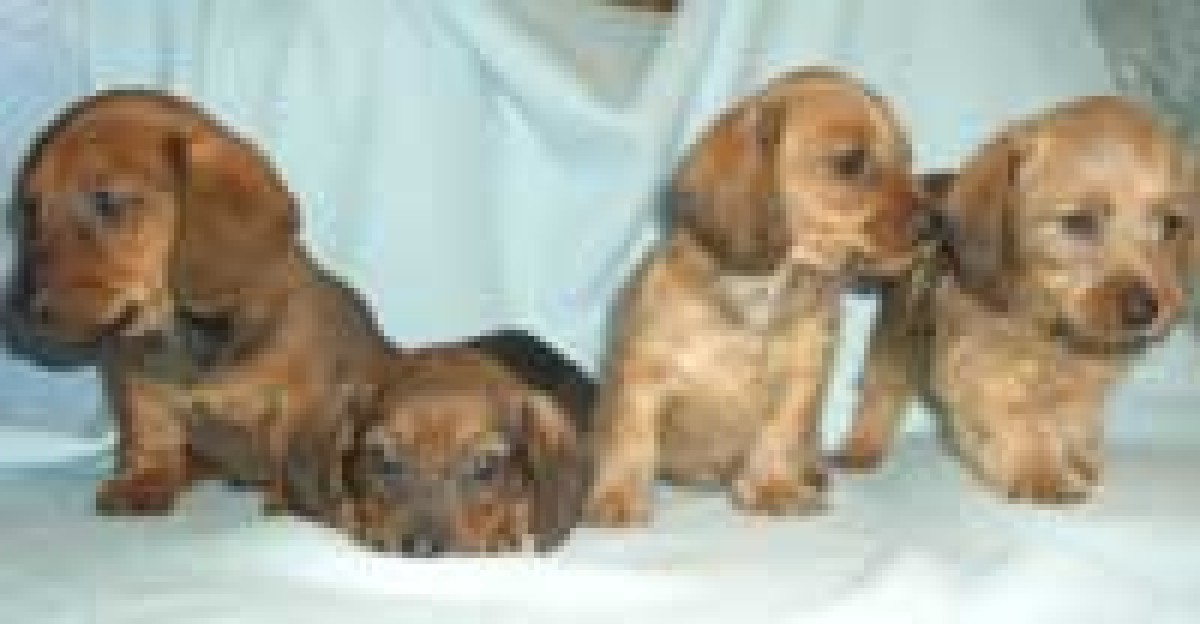 Fancy's pups were born in AFH's care on November 28th. There are two boys and two girls (Star, Fudge, Angel, and Midge). Mom is a miniature terrier miniature dachshund cross and Dad is a pure-bred miniature Dachshund. Angel is light coloured with a little black stripe down her back to her tail. She loves to be rubbed on the belly/chest. She also is very loving and likes to lick your neck. Fudge is dark coloured and most like the dachshund. He is the whopper of the litter! He is currently trying to eat the heads of all his brothers and sisters! Midge is the smallest at the moment. He is catching up to the rest. He is lighter in colour like Angel. He protects Angel very well indeed too! Star is the darkest of all the littermates. She is the only one to have a small white patch on her chest. We are now vetting applications and they will soon be able to go to their new homes.