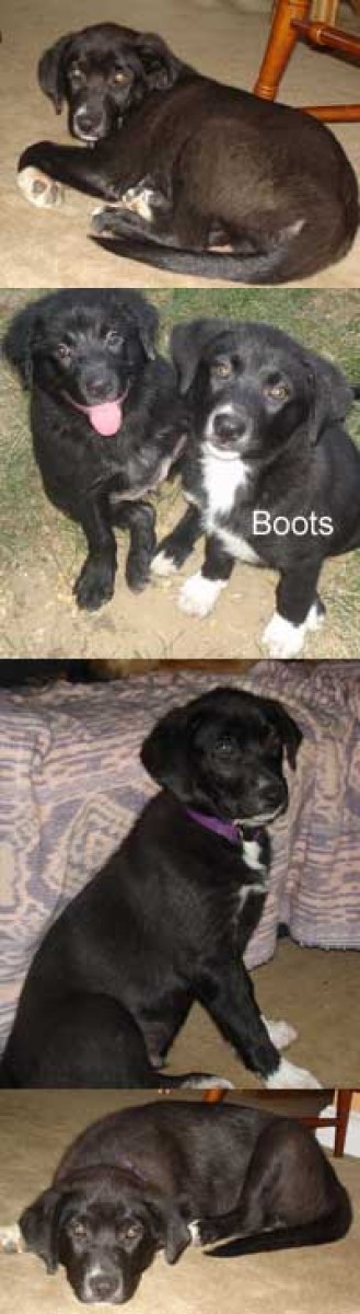 Hi, My name is Boots. I am the last of the litter of seven and my Foster mom cannot understand why. She thinks I am cute as a button and really smart too! I have not had an accident in the house in two weeks and that is great for a puppy my age. I love my two Foster brothers and make a great second or third dog in my forever home. I watch what they do and copy. I can sleep where the big boys sleep - and that is anywhere I want. If I start to chew on something I shouldn't, I stop when my foster mom tells me to and I don't try it again. (I am good boy!) I don't like being in the crate and hope I can graduate from it soon, but I understand that I need to be there when no one is home. Please come and meet me and I am sure you will fall in love!