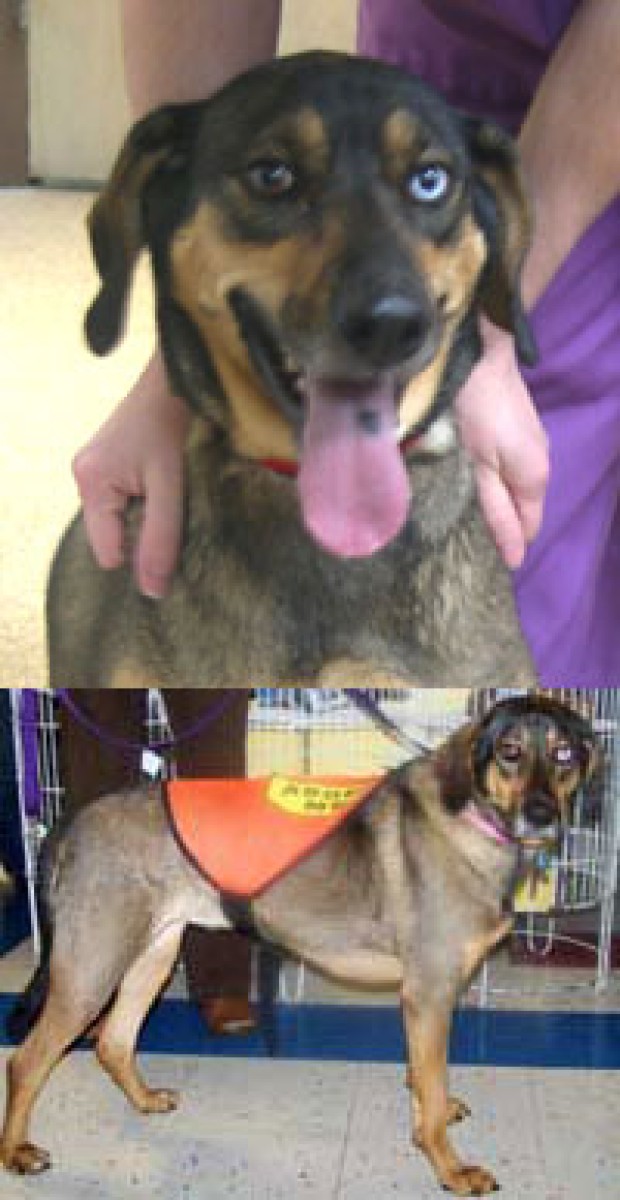 Do you want a great companion for your children? How about a fun walking/running partner? If you want a special dog without the hassle of having to train a puppy or deal with high energy levels, Emmie's the dog for you! She is well-trained and well-mannered, inquisitive but not destructive, great on leash and meets horses, dogs, and people with the same friendly disposition. Why is she here? Well, her people were going to have a baby and... well... anyway, she's here and we want to help this really great gal find her real forever home. Her mother was a purebred foxhound, and she has the physique, grace and demeanor of that beautiful breed--with black and tan coloring for good measure. Her foster mom loves the "come-hither" look that she gives you with her one blue/one brown pair of eyes...to let you know that she wants to be loved and petted...will you be the one to give that to her? Come and meet her and