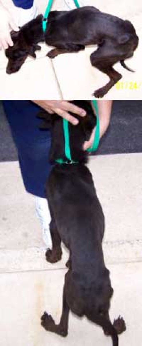This boy and a rottie came from an owner who is now being prosecuted for severe neglect. These emaciated boys came to us from the Page County shelter. Both are very nice, despite their ordeal. Once they have been nursed back to health, they will be available for adoption. If you would like to contribute to the care of these two boys, please mail your donation to AFH, PO Box 222801, Chantilly, VA 20153. Please be sure to indicate that you would like your contribution to go to the two neglected Page County dogs.