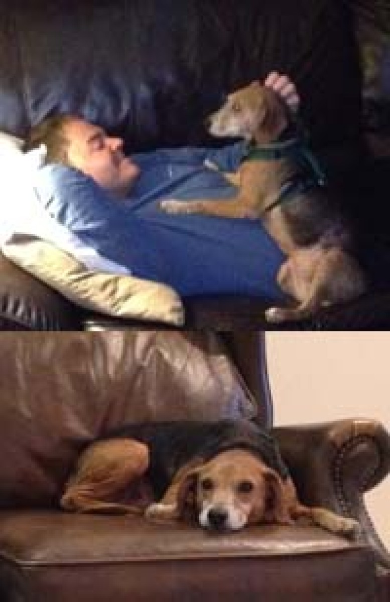 Hi, my name is Alice. I am beagle/dachshund mix. I am housebroken, crate trained and moderately active. My favorite past time is spending time with my foster mom and my foster sister who I am laying with in the picture. She says I am an angel because I don't chew on anything and she can trust me when I am out of her site. I am not good with young children as they make me nervous so I would do best in a home with no children under 12 years of age. I prefer to be the only pet so I can get all the hugs and kisses. I walk nicely on a leash and am not a big barker.