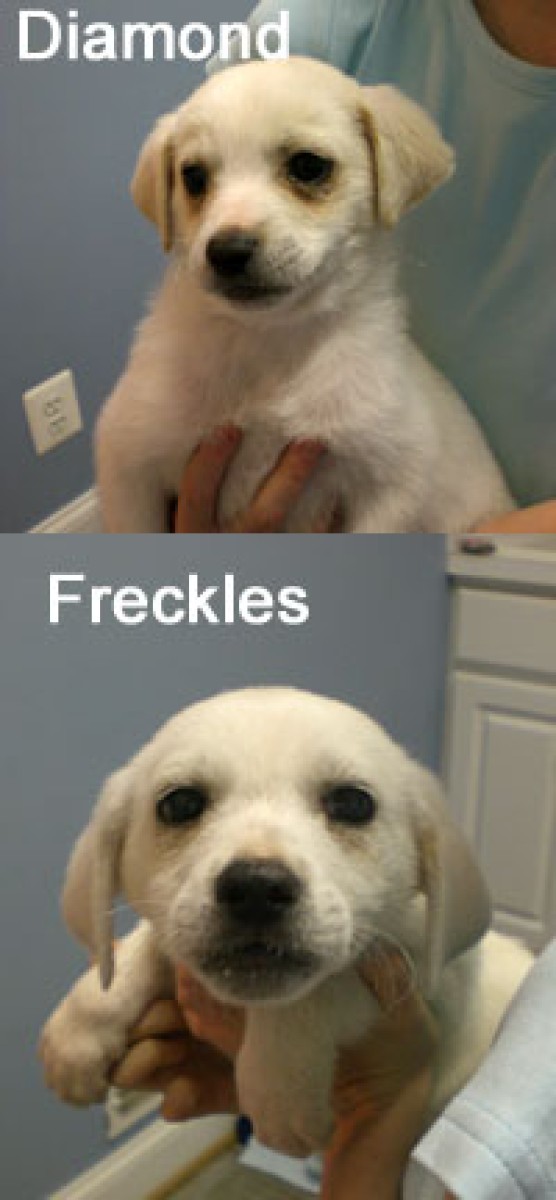 There are five of us in this litter, Sandy, Vicky, Freckles, Diamond, and George. Three have been snapped up and are moving to their new 'forever homes.' Diamond (female): I am a bit of a character and am very willful. Freckles (male): I am the Alpha male of the group ..although not the leader. I love to have belly rubs and am a very handsome lap boy. Would you like to meet us? E-mail to get things arranged.