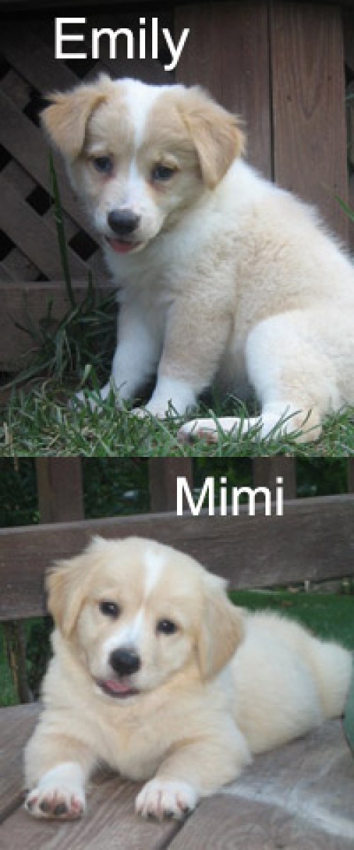 These puppies came in with their mom from Garrett County and are cute, cute, cute! They were born on 5/30/08 and have been in a loving foster home since they were a day old. They have been socialized with cats, dogs, and children. Their mother, is a sweet, smart, active, medium sized golden retriever mix. Mimi and Emily are playful puppies who are lots of fun. Mimi is the more rambunctious of the two. They will each need a family who has the time and ability to give them the exercise and training they deserve. Emily is adopted. Now Mimi says it is her turn!