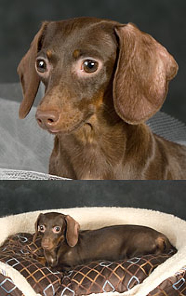 Hi my name is Brownie and I am a smooth coated dachshund weighing only 10 pounds. My foster mom believes I may be a couple years old. I came from an awful place called a Puppy Mill where I and 1000 other dogs were trapped in cages 24/7 with little to no human attention. When I first came to my foster home I was given a bath and as soon as all that puppy mill fifth washed down the drain I seemed to start to come out of my shell little by little. I am braver than my fellow foster sister Dottie who also came from the same horrible place and am really beginning to love all the attention my foster mom is giving me. I just learned how to walk on a leash, and am doing super especially when I know I'm going on a walk. There is a huge world out there, and my foster mom is amazed at how quickly I want to discover it. I am very interested in dogs of all sizes, but do get a little nervous when I hear them bark. I still have a long way to go with accepting human attention, but I am showing interest and when someone approaches me slowly and quietly I will go up to them. I seemed to love to curl up on my foster mom's lap when she sits on the floor. I even liked to curl up next to her 4 year old niece. With lots of patience and love I will learn how to be a dog again and start to work on training. I do not appear to be crate trained and I am definitely not house trained yet, but my foster mom is taking me for regular walks and keeping me on a strict schedule and so with time I'll learn there is a time and place to go to the bathroom. Once I'm crate trained house training should be a snap as long as we keep up with the schedule and my foster mom learns what my signal is. On our walks I am going to the bathroom more and so my foster mom thinks it is just the matter of time when I keep the crate clean.