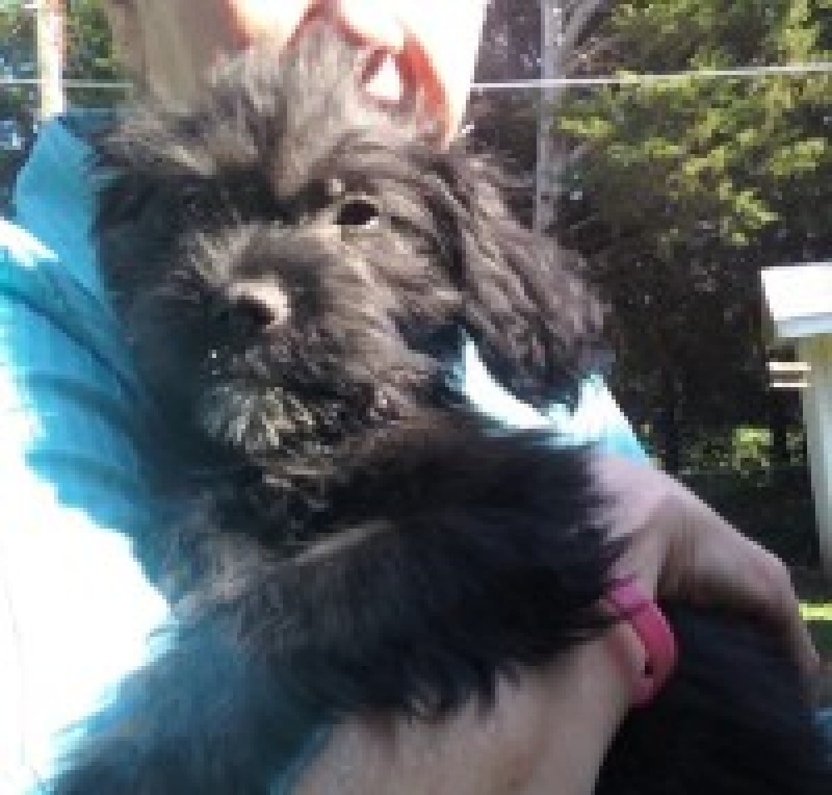 Chewey came to AFH with his "siblings" Eddie, Cubby, Cuddles, and Dexter. Eddie's not really from the same litter (he's two weeks older than the rest). These little ones came immediately into AFH's care after Fayette County Animal Shelter took ownership of them. They were still infested with fleas and all were suffering from bad kennel cough. After being checked by the vet, they were started on antibiotics and the foster was giving them nebulizer treatments twice a day and keeping them in a high humidity area. They all recovered and their loving and playful natures began to come out.