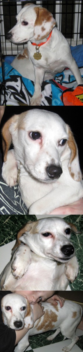 Hey all I'm Nicole. I'm a 14 month old beagle mix, about 20 pounds, I'm spayed, crate trained, working on the house breaking, and have all my shots. I'm a "blonde" beagle with a special heart marking on my ear--dapple markings they tell me. AFH rescued me at 6 weeks from West Virginia. I'm what you call a self-monitoring asthmatic, no meds necessary, but when I need a time out, I lay down and take it. I'm a good girl, friendly with my foster sisters (labs), love my new foster kids, and love to play tickle. I'm an extra special beagle just looking for that extra special family who I can give extra kisses and love to. If you're interested in looking into my sweet eyes that will melt you, please email or come to the Sunday adoption events! Until then tickles and kisses to you!