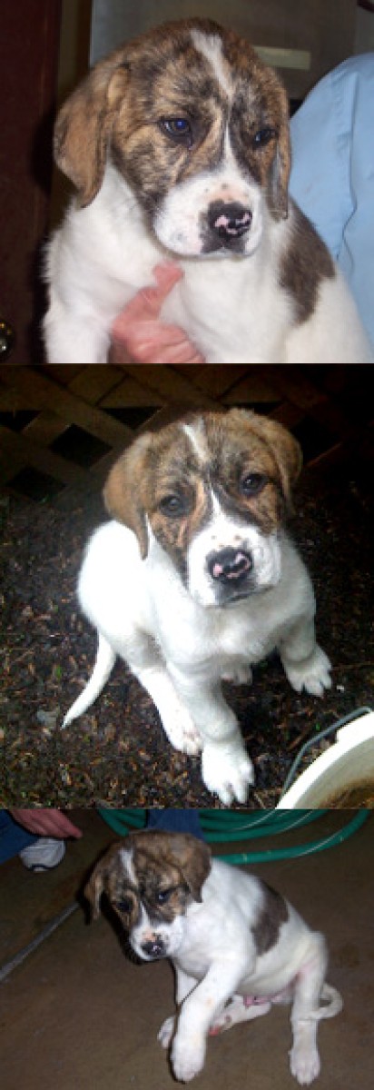 Baxter is very sweet, curious puppy. His personality reflects his mix. He has the curiosity of the hound and the mellow temperament of the St. Bernard. Baxter has a coat like cashmere and loves to snuggle after a good play session with the dogs and kids in his foster home. We expect Baxter to be about 80 lbs at maturity. If you'd like to meet Baxter send an email and his foster mom will contact you.