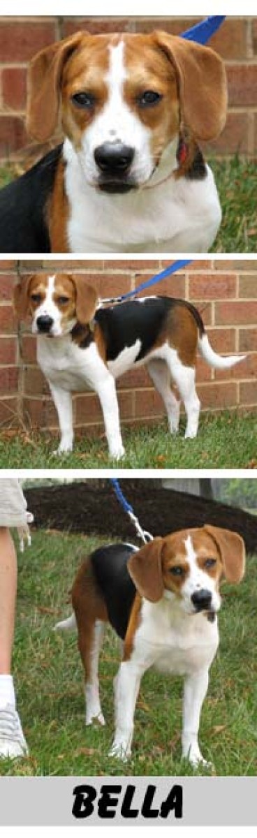 The Latin meaning for the baby girl name Bella is "beautiful." Nothing could be more descriptive of our darling beagle named Bella. She has a gorgeous tri-colored coat but the real beauty to this baby girl is her personality. She is well behaved, affectionate, and has a wonderful disposition. She gets along with children and other dogs. She sits on one side of a rippled gate from the foster's black cat and the cat and Bella play "googly eyes" with each other. She is working very hard on her housebreaking now and making good progress. She is a small beagle with a huge personality. She loves tummy rubs and cuddling.