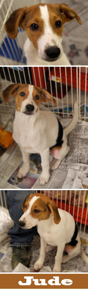 Jude is a handsome guy who has the classic Beagle look, and a wondefully balanced disposition. He's rambunctious at playtime and has a great level of energy, which he often unleashes on an unsuspecting squeeze toy. He's also very people-oriented, however, and you'll often find him at your feet, hoping for a little extra attention. asking for a little human attention. Jude is still available for adoption. The rest have found new homes.