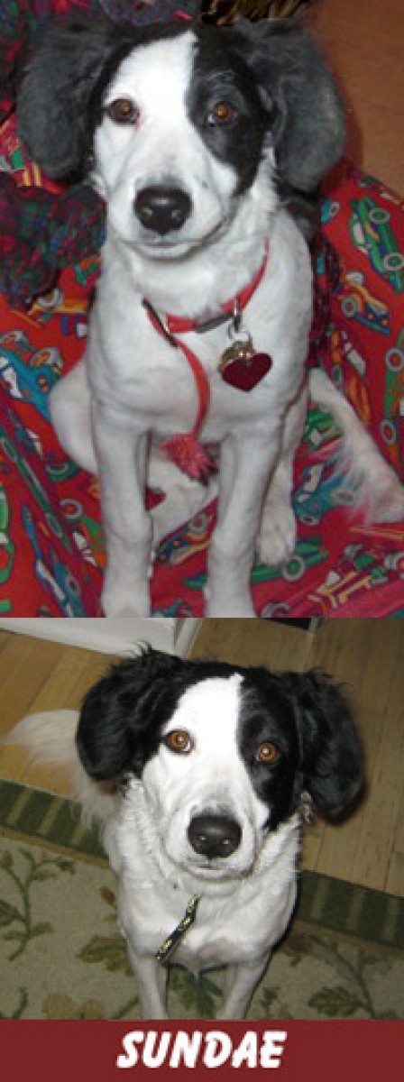Sundae is a very sweet, lovable, smart, and playful girl. She loves all other dogs, and is also very people-oriented. She is a border collie mix, which means she needs a lot of exercise. She was raised around kids, and just loves them. Sundae is housebroken and crate trained, though she will need regularly potty breaks to ensure consistency. She still very much a puppy and will need stimulation to keep her entertained and occupied. She walks fairly well on the leash, though she would do best with a gentle leader or halter to stop her from pulling. She just loves to chase squirrels! She would do best in a home with lots of room to play, people around a good deal of the time, and other dogs to play with. With other dogs, she is submissive and knows how to handle herself to make fast friends. She is known to chase cats so would do better in a home without any. Sundae is a very loving and affectionate girl and will make an excellent pet.