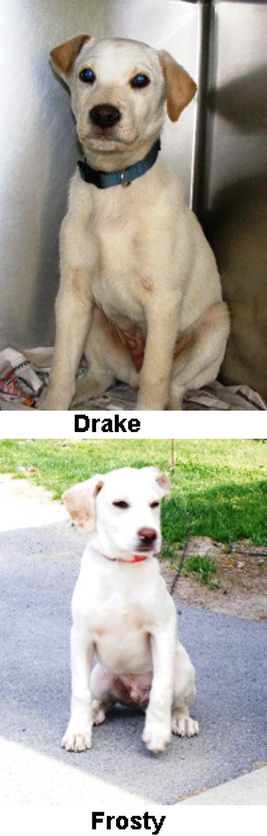 This Dog has already been adopted! Keep looking for your perfect match on our available Dogs page. Drake and Frosty Male (Altered) — Date of Birth: 02/03/2010 (16 years old (Senior)) Yellow Labrador Retriever Mix Drake and Frosty are Yellow Lab Mix pups. Frosty is adopted. Available Dogs