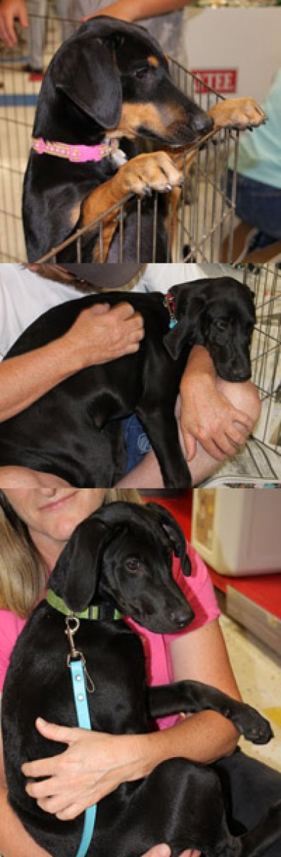 Wilmington (Will): Will is the biggest, all black male. He is very playful (one of the more playful pups) and will even take a flying leap over his brothers and sisters just to get in on the action! He also loves to be around people and be petted. Will LOVES the water bottle (I squirt it in his mouth). He definitely shows qualities of a Lab.