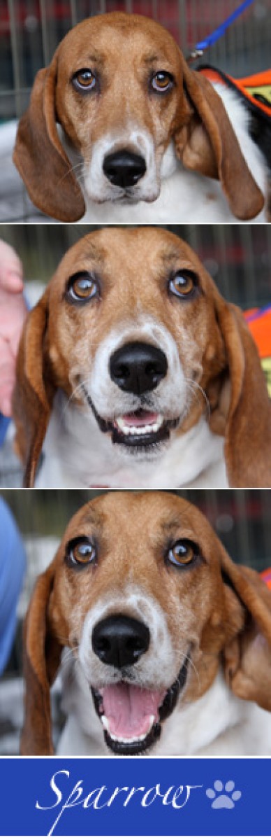Sparrow - I am a small basset hound. My foster mom says I must be mixed with something because I just don't quite have the face of a basset. I like to sit in front of the window and relax. I'm very good at walking on a leash but my short legs don't let me walk very fast. I am trying to gain some weight that I lost having my pups. I did a great job as a mom, but now I'm all ready to go to a home where I can just relax. My foster mom says that I get a little too excited about people food and need to just eat dog food, no fun! I am very quiet while I'm inside and do a pretty good job going potty outside.
