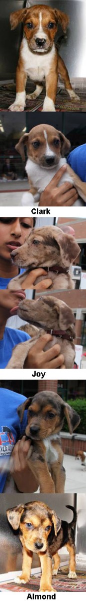 We are told that Clark, Joy, and Almond are lab mixes but judging by their coats, we think they likely are mixed with Catahoula Leopard dog. They came to us from a shelter in WV are are now safely in foster.