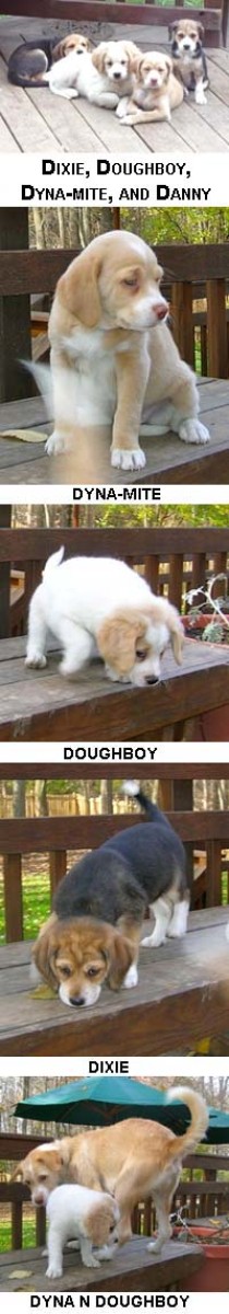 Dyna-mite, Dixie, Doughboy, and Danny are now available for adoption. Aren't we just so cute! Dyna-mite, doughboy and Dixie have been adopted.