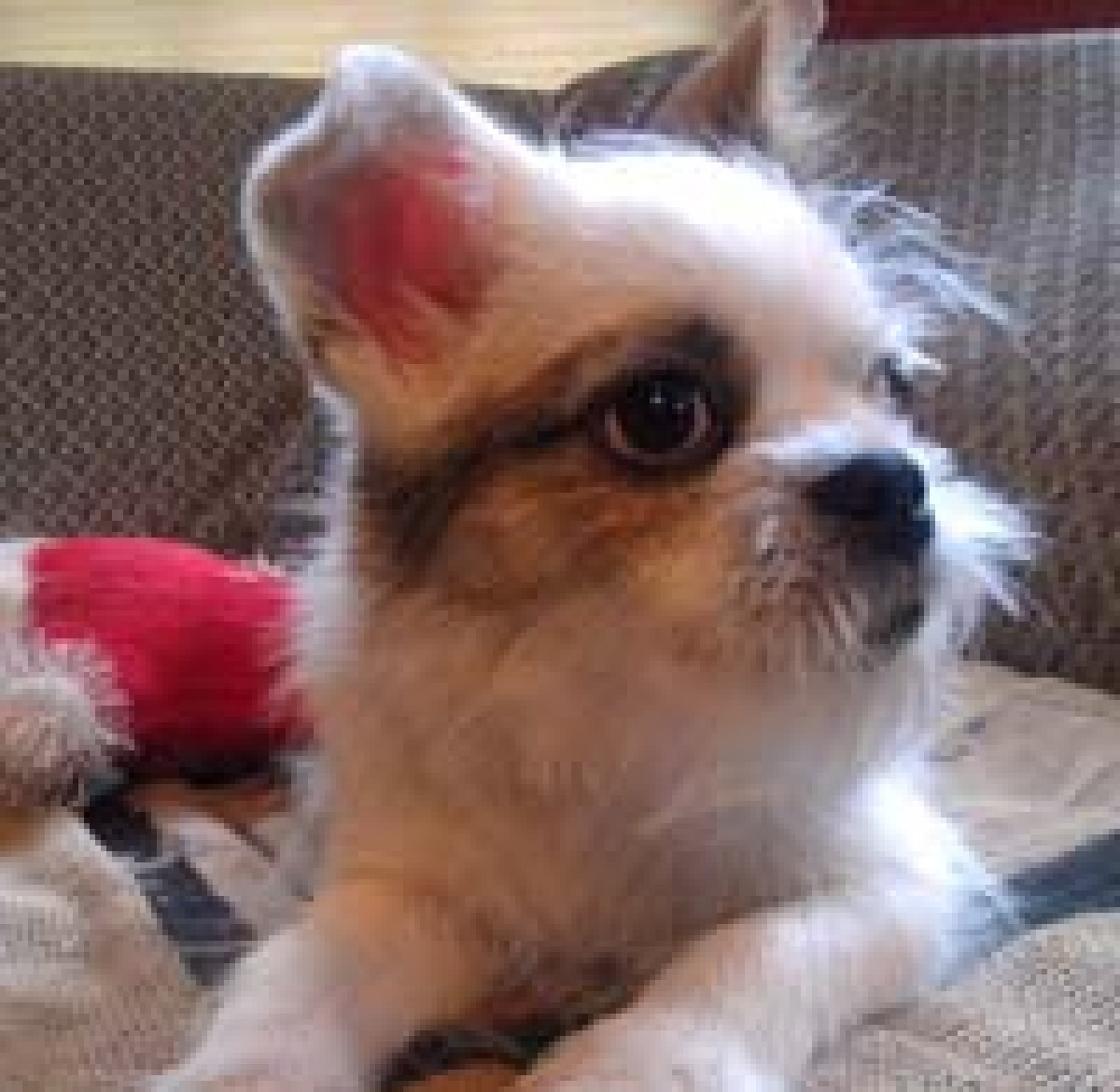 Goat is a wonderful little boy. His fur is one coat thick and soft with wiry sprouts throughout like a border terrier but his eyes look like a Boston terrier. What a cute combo. He is full of life and is not afraid or frightened of the world. He is very social and is good with cats, dogs, children and adults. He is already working on being housetrained and is doing very well. He loves to cuddle and is very playful. At his foster's house, he is playing, playing, playing. He loves his toys and the boys whose hearts he has already melted. He is feisty ... thinking he can take on big dogs then rolls to his back in submission. They other dogs are enjoying him as much as the humans are. He loves to give kisses and then melt in your arms for a snuggle. He will be an amazing addition to any family or owner when he finds his forever home!