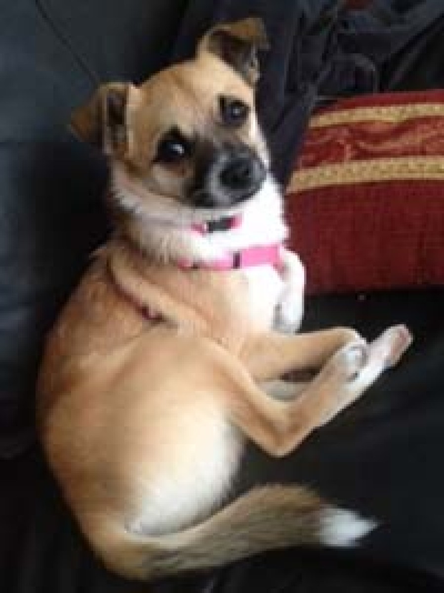 Lillian is a Chihuahua Mix. She was given up to the shelter by her owner when they could no longer care for her. She rides well in a car, gets along with cats, dogs and children. She is playful and very friendly to all. She hardly barks and although isn't fully trained, house training will be easy as she holds it for hours. She is doing well learning basic commands and is very smart. She loves walks. She has to follow me around and be in my lap or next to me at all times.