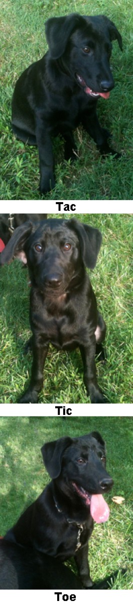 Tic, Tac and Toe came to AFH with their siblings. Mom was a pure-bred Border Collie but we would guess that dad was probably a Lab. These pups are very smart and loving. They are well on their way to being housebroken as they follow Uncle Schmoe the Beagle to do their business. They are good pups in their crates and are friendly with everyone. They would be excellent with children, in a multi dog household, or as a great jogging partner. Come meet them and fall in love. Toe and Tic have been adopted.