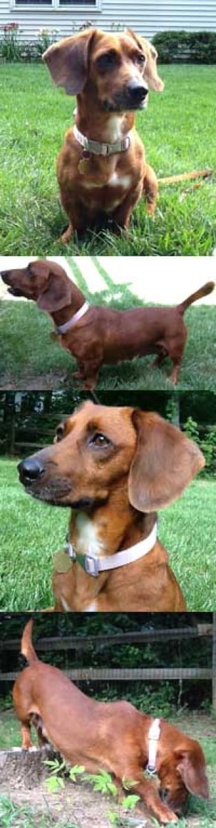 Dinah is a Dear Dachshund. She is probably the happiest dog that this foster has had the pleasure to know! Her tail is always wagging, whether it is going on a walk or car ride, meeting new people or dogs, waiting for her meals, or just hanging out! Her true personality has emerged now that she is no longer taking care of her puppies. Dinah loves to play fetch, sit for a treat, and follow her foster mom and dogs around the house. She is very cooperative with grooming, bathing, and nail trimming. One of her particularly endearing qualities is when she feels the urge to perform the Dachshund Dash. It starts with a game of fetch, then suddenly she will run straight across the fenced yard as fast as her short legs will take her, then she-ll do a sudden u-turn, wait for her back half to change direction, then she's off again! The pure joy on her face and the flapping of her ears is a true sight to behold! Dinah will stay in the crate for only short periods of time (e.g. during meals), but is housebroken and is free to roam the house. Lady Di has fully recovered from her spay surgery, is fully vetted, and ready to find her forever home! Please submit your application, visit her at the adoption events, or arrange to meet her at her foster home. Let's give Dinah the Dachshund the Devoted home that she so Deserves!