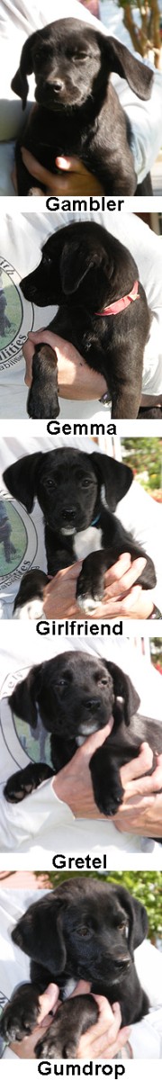 Gemma,Gambler, Girlfriend, Gretel and Gumdrop have been adopted.