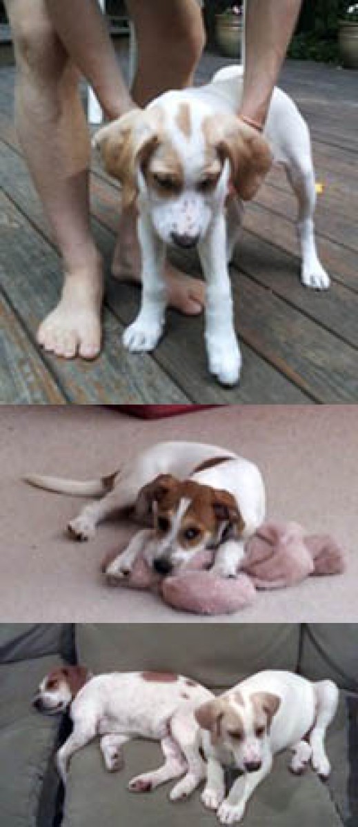 This brother sister combo have just arrived. The boy is the lighter colored one. He's very loving and enjoys cuddling. He likes to run and play which is adorable because his feet are way too big for him and he flops around. He's also very laid back, he loves to just lay around. His sister is still pretty small. She's got a darker auburn tone to her ears and a couple of spots. She's learned how to fetch and loves it. She loves to play and run around.