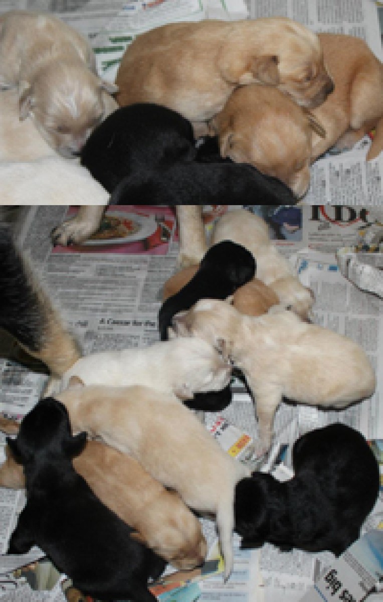 These 9 newborn pups were found in a ditch along with their mom. Mom is an Australian Shepherd mix but not sure who dad was. These beautiful little pups will be available around the beginning of August.