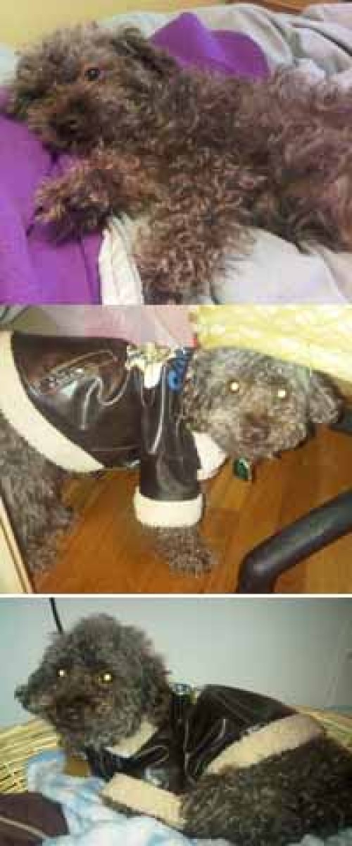 Cody is a pure-bred Poodle. He lived with a family with 3 young children, but was given up because one child was extremely allergic. Cody is an adorable, sweet little dog! He has been with us for only a couple of days, so he is still trying to adjust, but very friendly and waggy. I gave him a bath and trimmed his facila hair, and he was very good about it. He is house trained, crate trained, walks well on the leash and rides quietly in the car. He is very quiet, well mannered and just wants to snuggle. We open the back door and he hurries outside, then hurries back in and plops back on his bed. He slept on the bed with us and was super quiet the whole night. As I write this, my 2 other dogs are on their beds, very comfy, and Cody is laying near my feet. 🙂