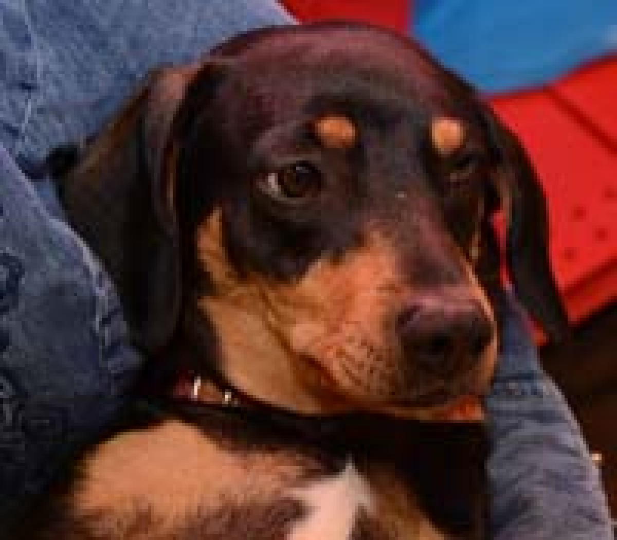 Sadie is a standard size dachshund, weighing about 20-25. She gave birth to 10 pups. She is sweet and cuddly, and very smart! She also likes to burrow under the covers on the couch, and is learning to sit and walk on a lead. Sadie is spayed and potty trained in her foster's home with doggie door and fenced yard. All of her pups have been adopted and she's looking for her forever home.