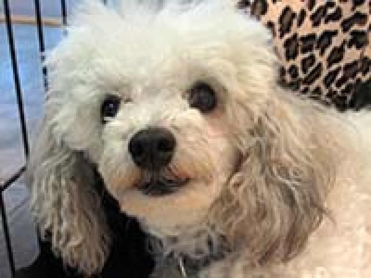 Astrid is a very sleek looking poodle. She has café au lait coloration -- a creamy white with gray on the ears. She is a real sweetheart who loves to sit next to her people and be part of the family. A true poodle, she is a quick learner. She is also very food motivated so will perform for the chance of a treat. She is crate trained and mostly house trained. We haven’t had any accidents since her puppies left. She does very well with other dogs and sometimes seems lonely when she is alone. She is scheduled to be spayed on August 26th and can go to her forever home after that.