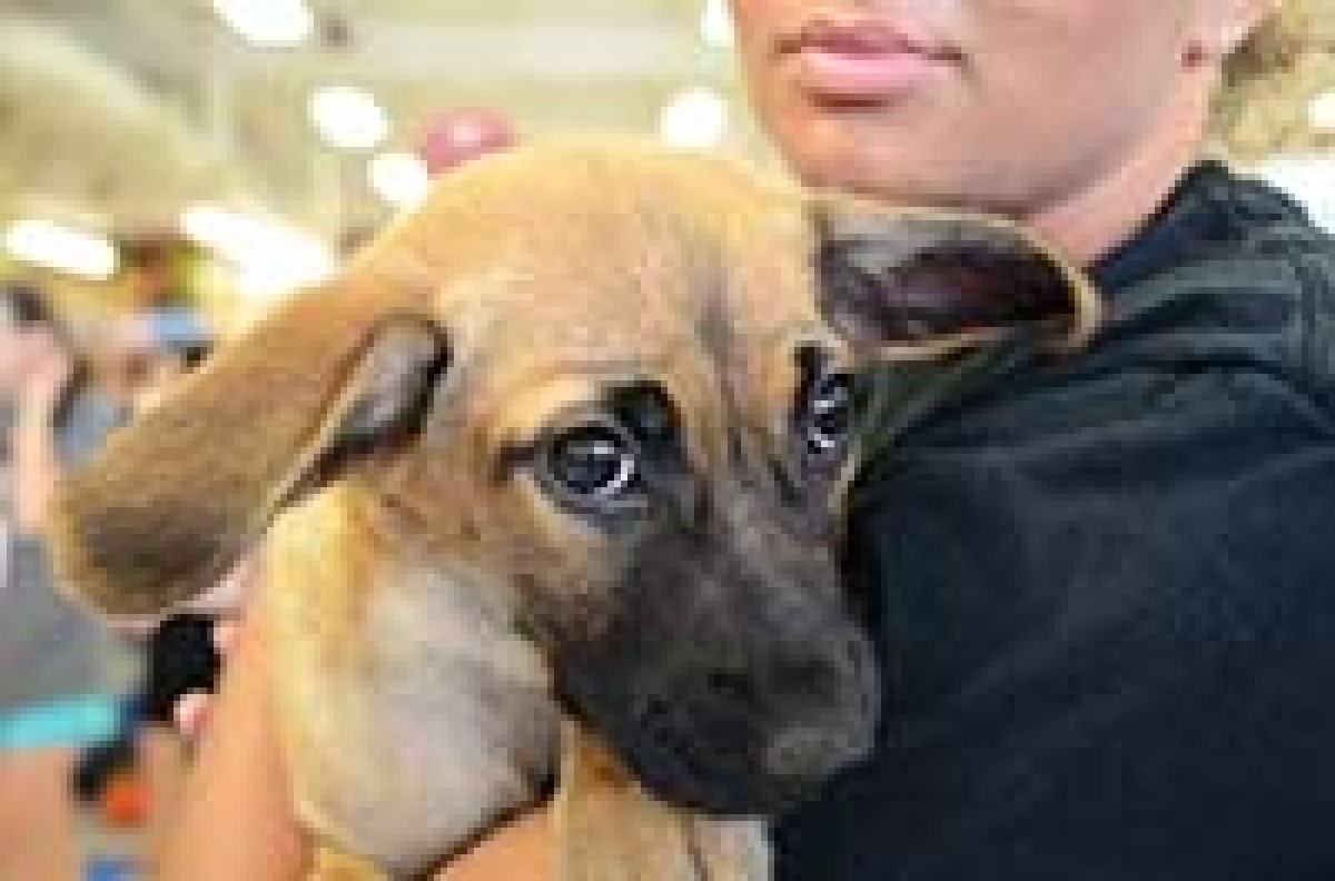 Dinky is a super funny and adorable Lab/ German Sheppard mix. He likes to sleep with her tongue out and it is really funny! Dinky loves to cuddle up and sleep right next to or on his brothers and sister!