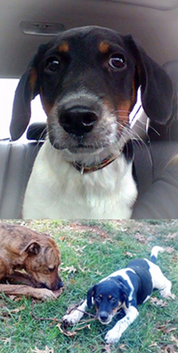 Hunter is quite a happy little pup!  He loves playing with the foster dog in his home, following him all over the house and yard. Although he is energetic, he is not overly so.  He loves to sit on laps and enjoys belly scratches. He is crate trained and doing well on housetraining. Hunter has met the cat in his foster home and the first day he tried to play with it.  Since that wasn't acceptable to the cat, he now just sits and watches him but is respectful of his space. He is good about not chewing things in the house, but loves to chew on sticks in the yard.