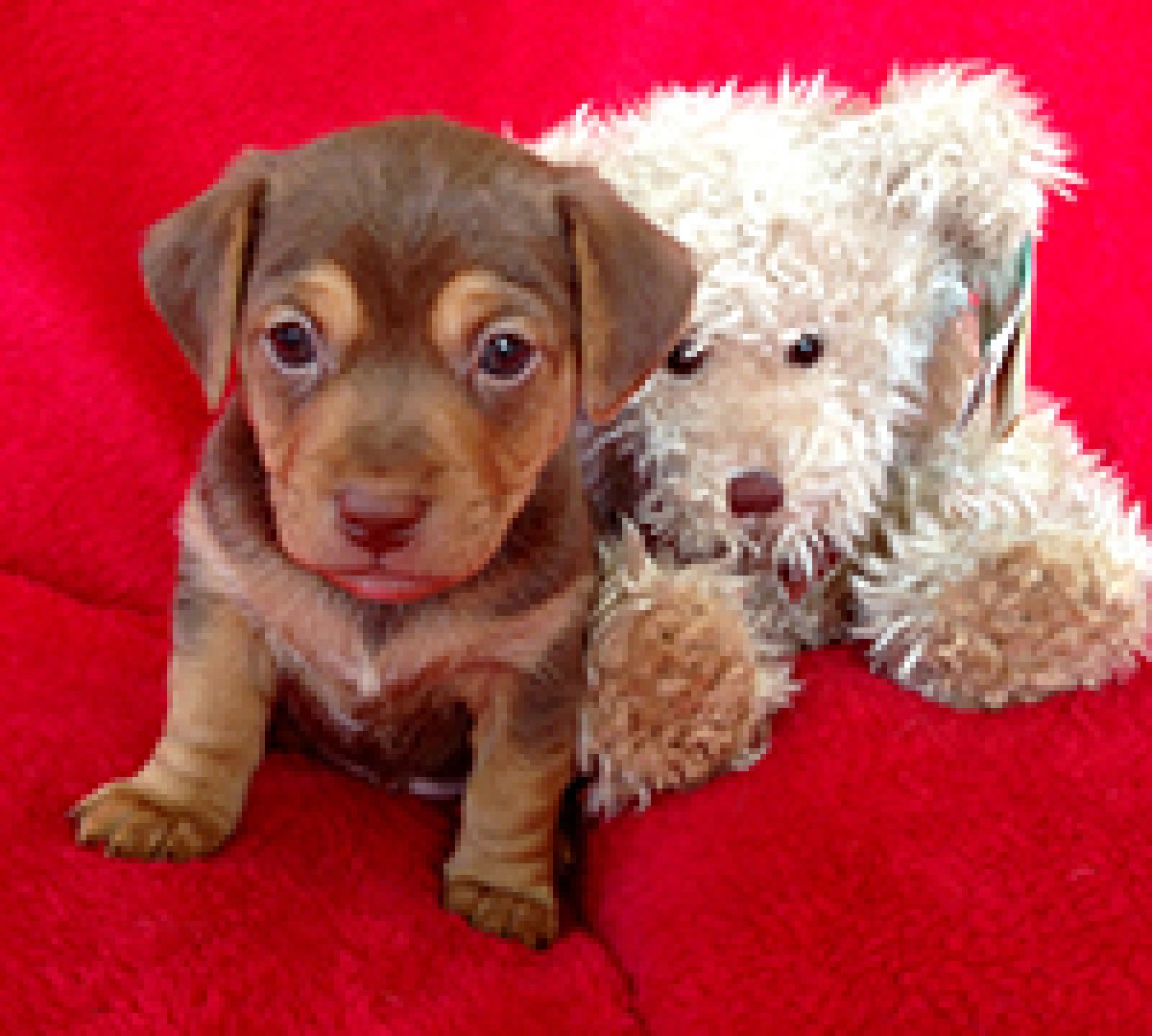 Update Feb. 5, 2014: I am now 6 weeks old and weigh 3 pounds 4 ounces. I am the smallest pup in my litter but I am not shy. I am spunky and brave. My fur remains a taupe color that is so pretty.