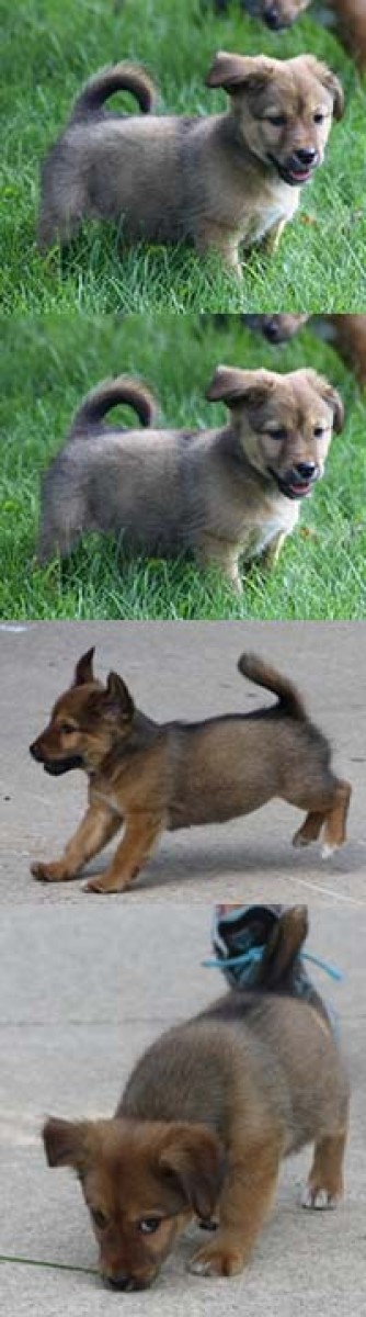 Cat is the calmest of her litter and has a distinctly fuzzy coat with much more black than her siblings.  She is super sweet and cuddly.  She also has shorter legs than her brothers but not as much as her sister Lulu.