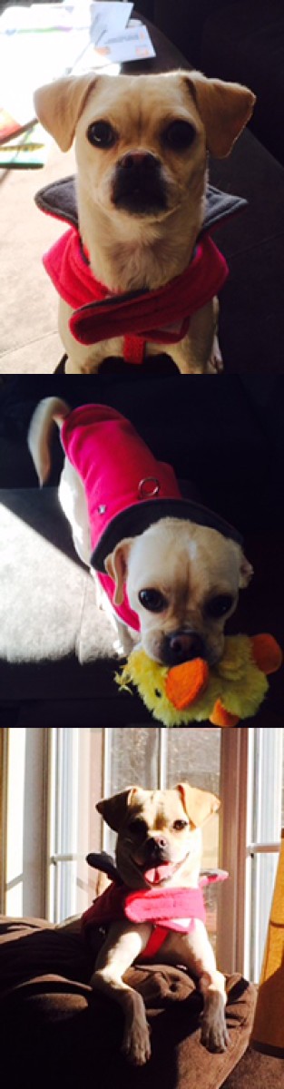Paco is a Chihuahua/pug mix. She is a wonderful girl with a wrinkly upturned nose and cute underbite. Her foster family has taken care of her since she was first rescued as a pup. She has a very sweet, energetic personality. She is a true Velcro dog and loves to be wherever you are, snuggling in your lap or on your shoulders. Paco is hoping for a forever family where she is not left alone for long periods of time or a home that has another dog who she can be best buddies with She does well in a crate. She is almost housetrained. Her foster family is establishing expectations and giving her regular access to the outside. She has already made significant improvement. She loves to go for walks and usually can be found running around the house with a stuffed toy in her mouth. She plays well with our other dogs (enthusiastic puppies as well as older dogs). She is looking for a forever home where people will give her as much love as she gives them.