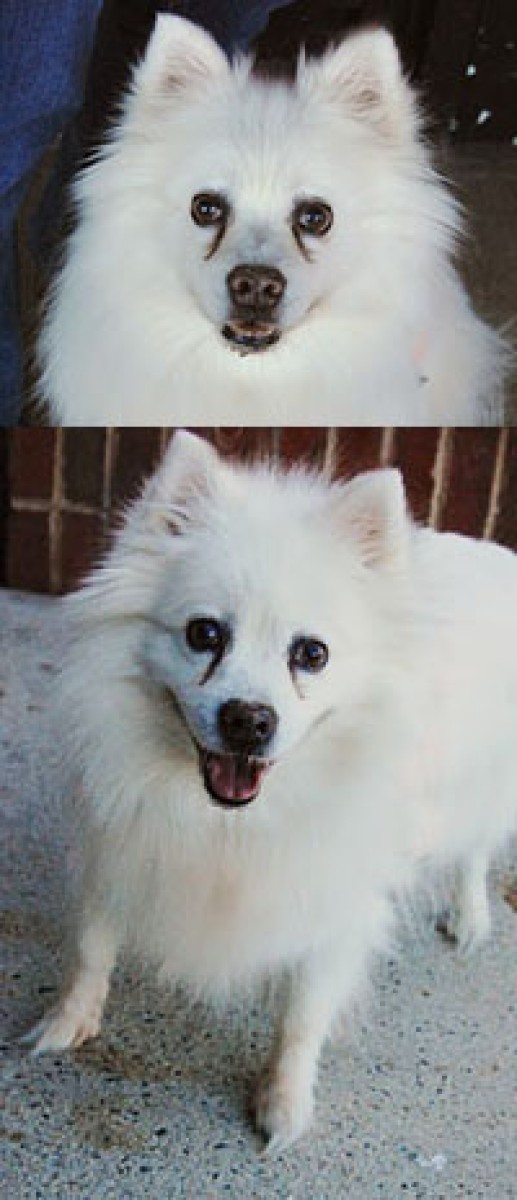 Mojo and Jaylo were given up when their owner died from cancer. Jaylo is a sweet girl who just wants to lay by your feet and loves to be rubbed. She is just starting to get the hang of stairs (in the beginning she wouldn't go up or down them at all). She is very calm most of the time but occasionally gets a little vocal. She is good with cats and other dogs.