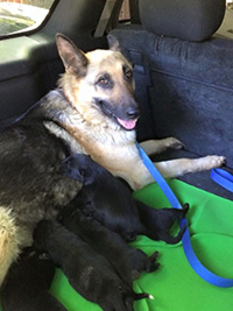 Sierra, the purebred German Shepherd mom, came to AFH with her 11 five-day old puppies. The owner was going to dump her at their local shelter yesterday, but when she arrived, she was told that the shelter is full and that they would be all killed immediately. She then decided she could hold them a few more days to give us time to find a foster for them. She is now safely in her foster home and will soon be looking for her forever home.