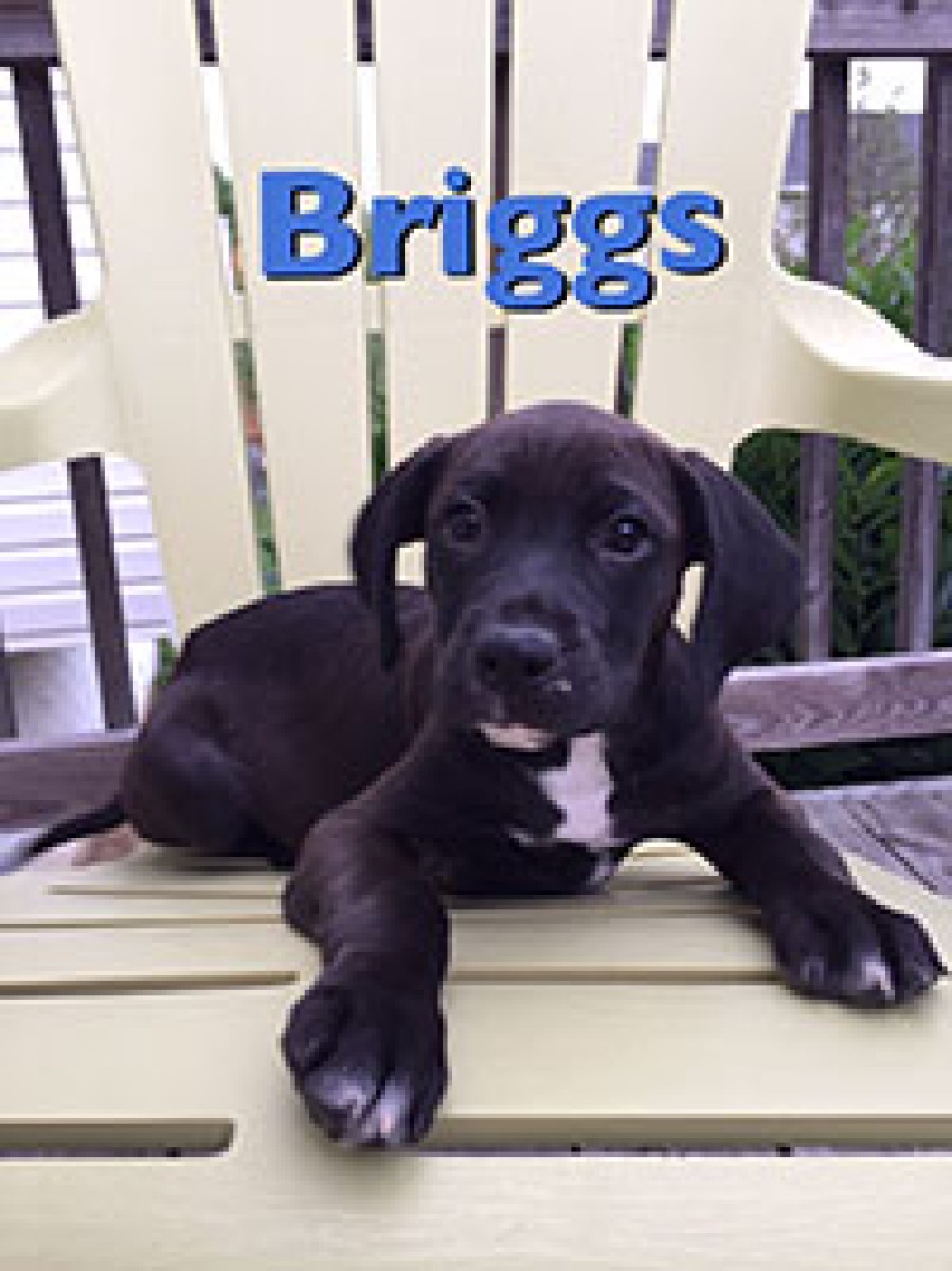 These six pups and their momma were left to fend for themselves in the basement of their home, when the owners moved away. Thanfully they were rescued. Briggs is Max’s partner in crime! He can often be found racing around and roughhousing with his siblings or playing with his kong or nylabone. He enjoys giving kisses and is really affectionate. He’s a happy boy and will make a great addition to a lucky family.
