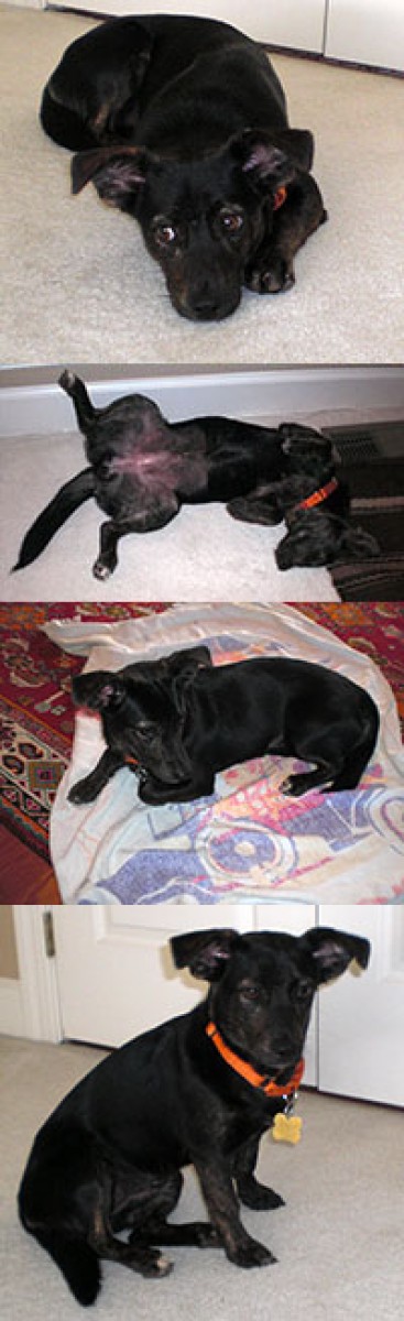 Rosalina (“Rosie”) is a very mature puppy! She is gentle, sweet, and loves everyone, especially children. She gets along and plays well with other dogs and her toys—likes her squeaky toy. She wants to snuggle and have her belly rubbed. She asks to go out and is almost house trained. Has a very predictable need-to-go schedule. She will sleep in her crate at night. She might be a little timid when seeing something for the first time. Rosalina knows “sit/stay” “no” (learned in one week) and started work on agility training before coming to AFH. Catches on quickly. She likes treats and has a good appetite. She already walks nicely and calmly on her leash—does not pull unless she sees a squirrel or another dog. She is strong and alert; her ears go up when called or she sees something interesting. She has a nice black coat with soft ears and brindle highlights on her ears, legs and rear. No sign of shedding. Rosie weighs 20 lbs., is clean, and lies down to let you wipe her feet after a walk. She’ll let you put hands in her mouth (teeth cleaning) and handle her paws. She’s a great, clean, well-behaved puppy. Her foster welcomes visits at home and you can meet Rosie at Petco Sundays.