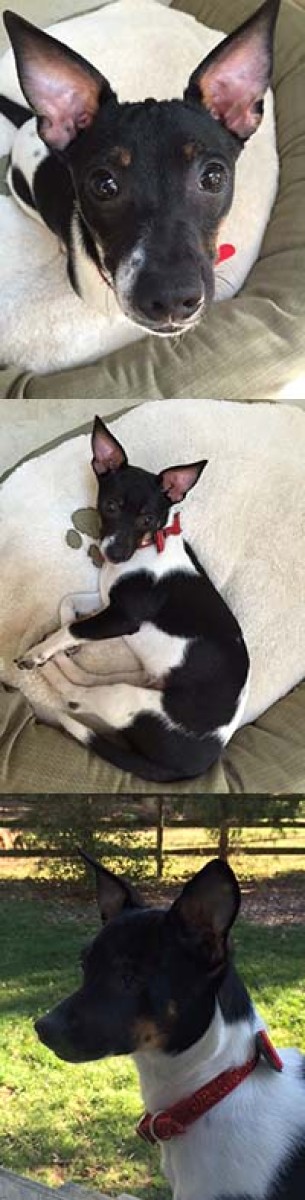 Look out world, here comes Thoroughly Modern Minnie! As happy as can be, Minnie sports a gorgeous coat of the blackest black and the whitest white. Adding to the contemporary effect are spots and speckles, scallops and freckles! She also has added touches of copper to enhance her eyebrows and cheekbones! Although a real head-turner in appearance, she also has brains and athleticism to add to her resume. Minnie is crate trained and house broken, but is given the opportunity to go outside frequently as she is still a puppy! Each day brings about a new adventure on her long walks. She is sometimes timid when encountering a new sight or sound, and is learning to ignore other dogs that are not as well behaved as she is! Minnie has learned how to sit on command and has wonderful eye contact and attention, so the sky’s the limit for training! She currently carries about 12 pounds on her petite, muscular frame. There is a lot of dog in this small package! Minnie would do well in a home with other fun loving canines and people who can not only keep up with her joyful activity level but also enjoy quiet time for cuddles and naps!  Please contact AFH today to learn more about this hip little lady!