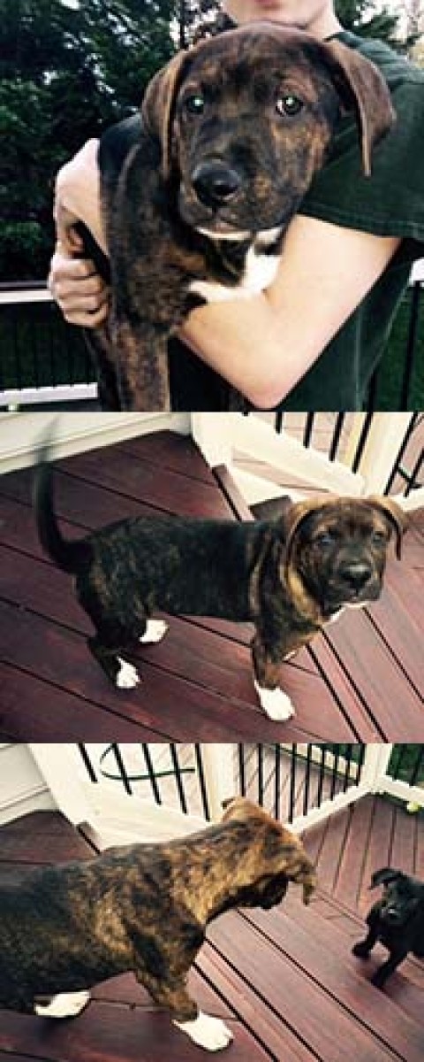 Riley is the big brother in the litter.  He is a real a sweetheart and very affectionate.  He is very playful and happiest when running around the yard or playing with his toys. He is very curious and loves to explore.  Like his sisters, he is very friendly and gets along well with them and the bigger dog in the house.  He also loves people and especially enjoys a good cuddle in someone's lap.