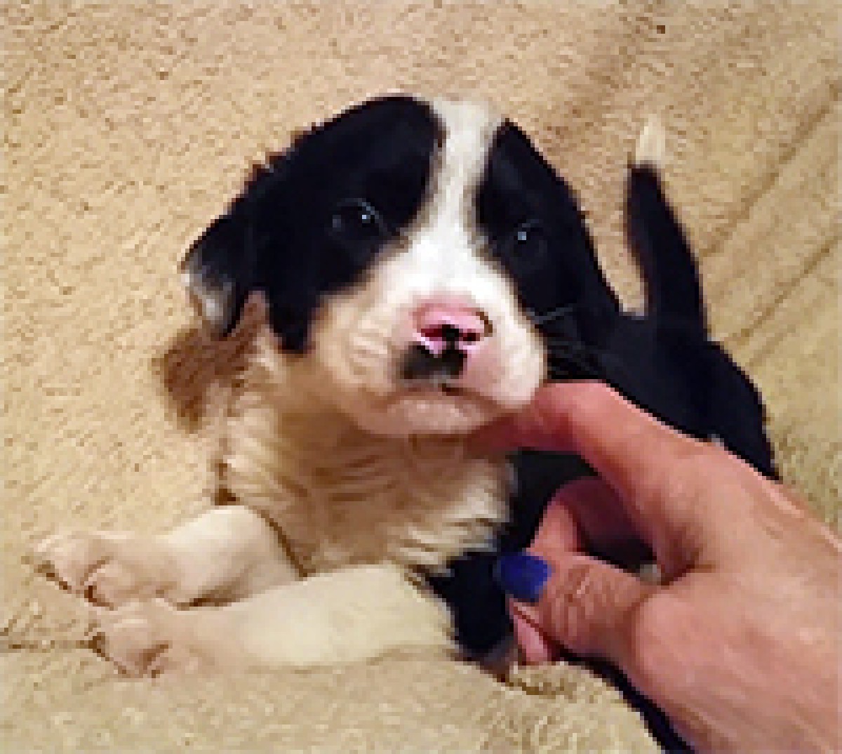 Ellie was found as a stray and had her pups in a rural shelter. Her pip Enzo is the smallest of the boys. He is super sweet and loves people.