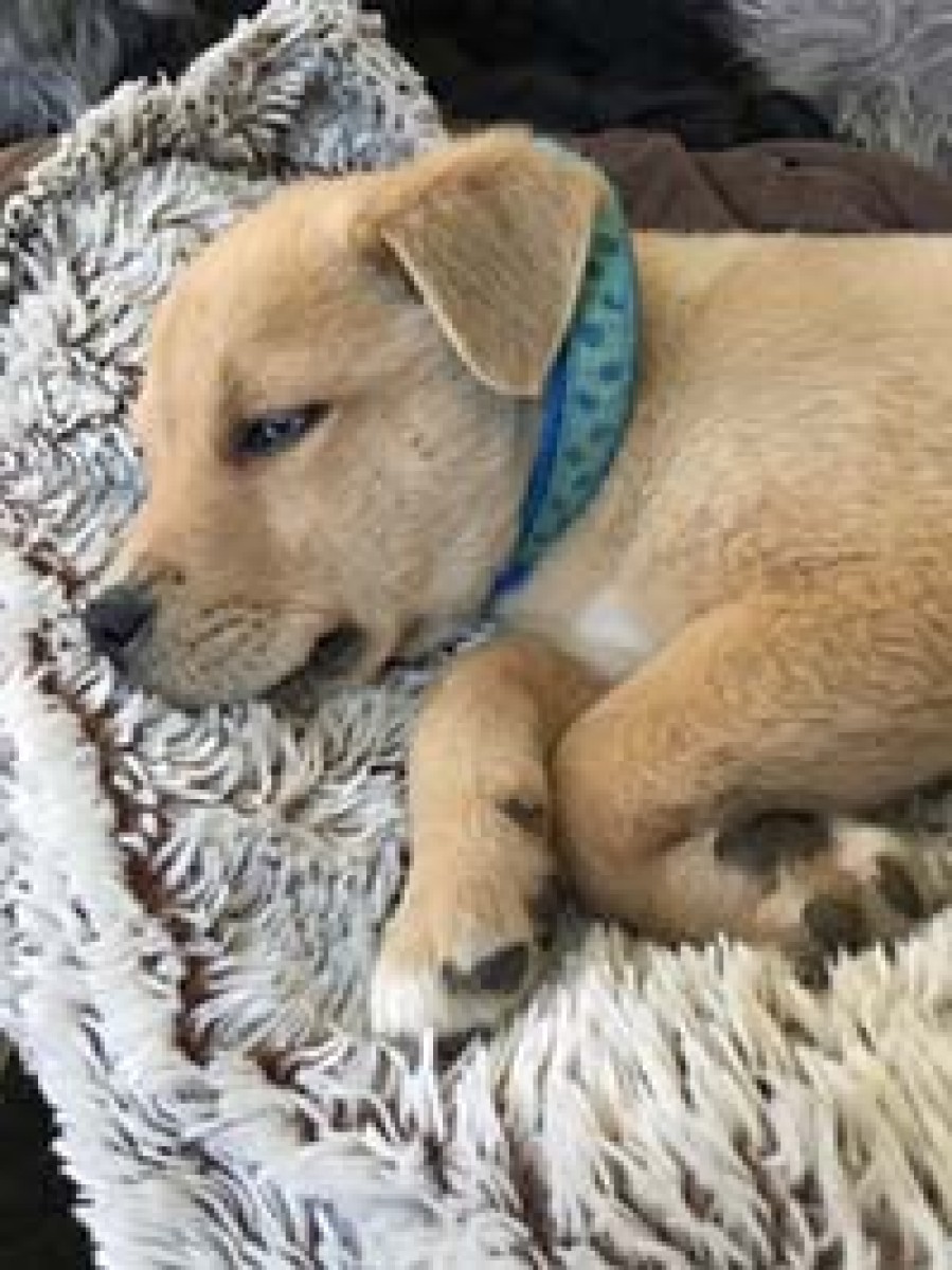 Bella is one of a litter of four Labrador/Siberian Husky/Aussie mix pups. Sh is friendly and playful. She has floppy ears and super soft coat. Bella is great with children and other doggies and only occasionally barks. She is also cratetrained. Bela's left eye is blue and the right is brown! She has a great sense of fun.