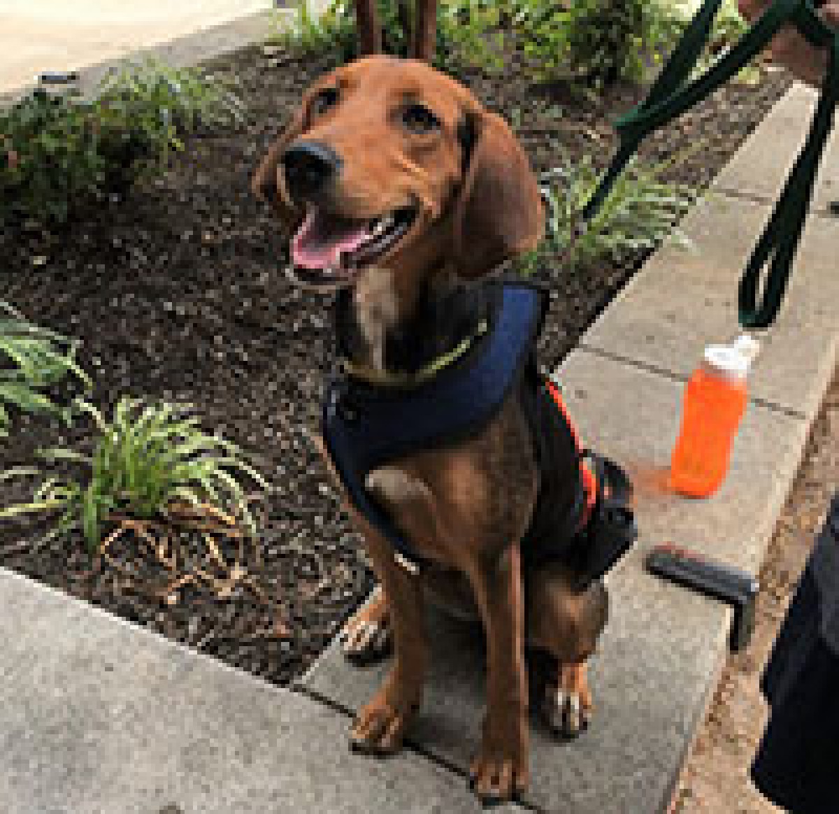 June is a Hound/Shepard mix and is a total sweetheart. She weighs about 35lbs and is still growing. She loves people and other dogs and is very sweet and calm for a 5 month old puppy. June is a smart little girl who loves cuddles, investigating, adventuring and aims to please. She likes to play with her foster brother, and she recently learned to sit for treats. June is making good progress working on her house training, crate training, and walking on a leash.