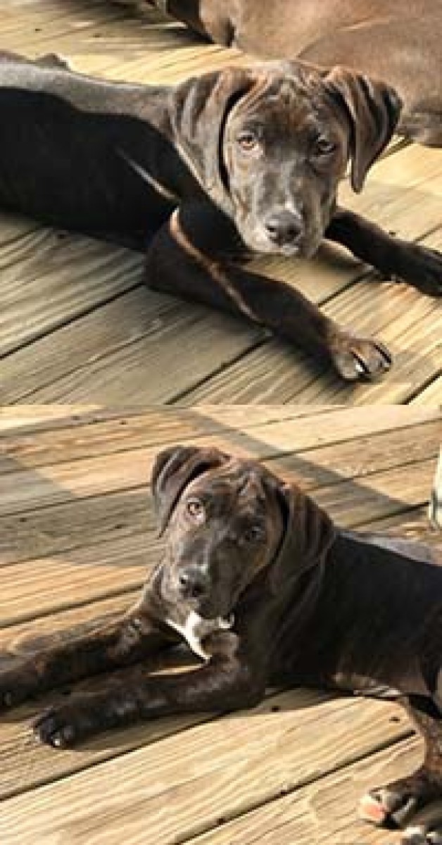 Boe and Betha are sweet dogs and have already learned to sit. Housebreaking is improving and we think they will get their soon. They are both a beautiful black/chocolate brindle with white.