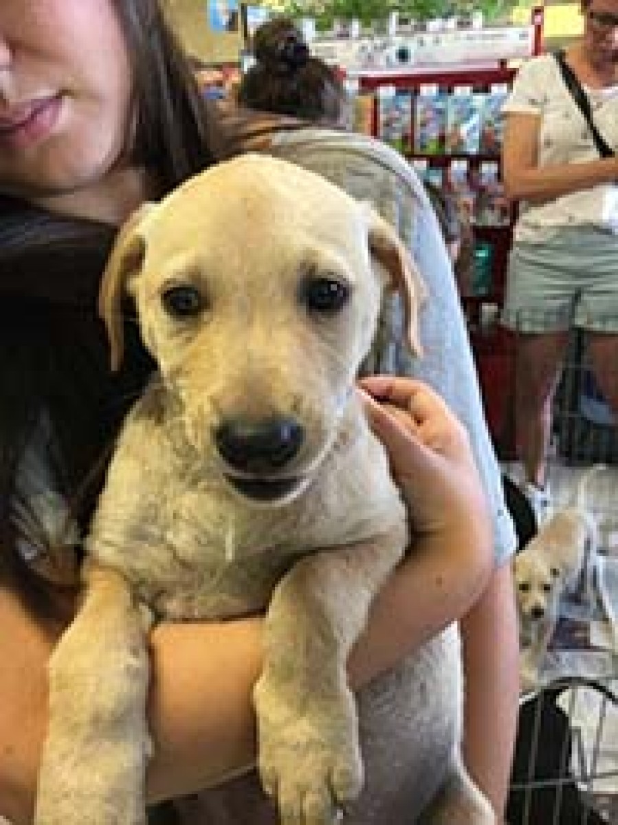 Golden/Lab Mix. No word on dad. These pups are very sweet. Good with